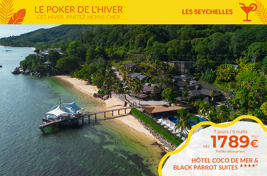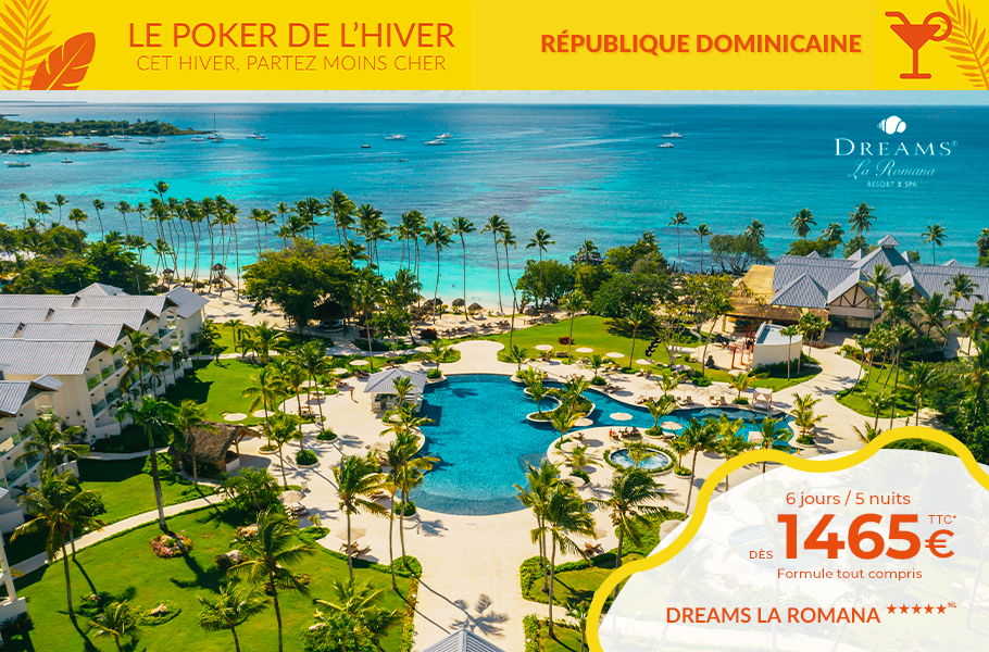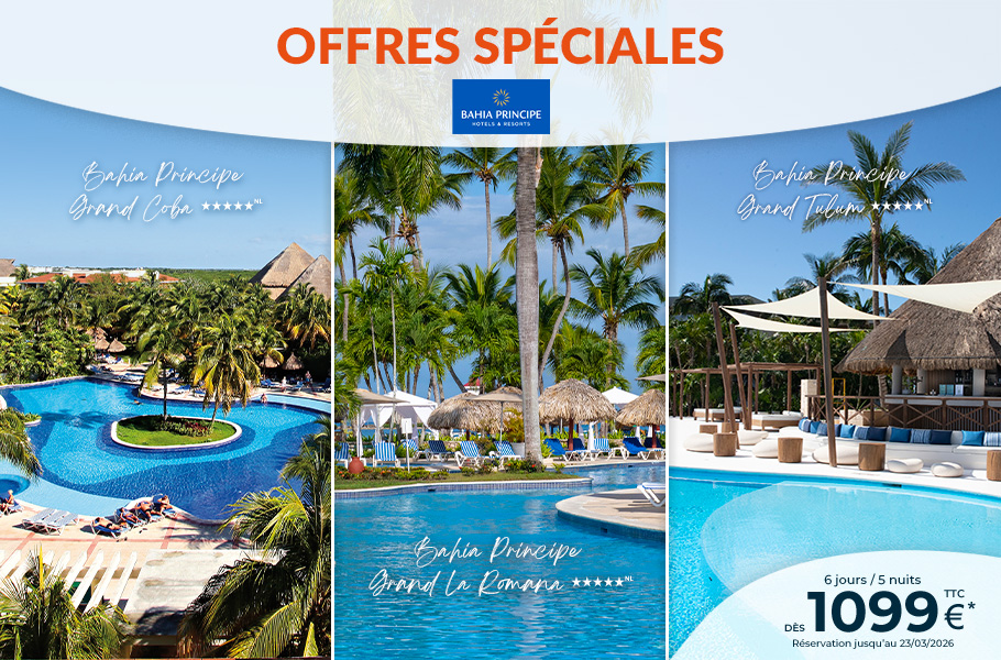 Tahiti & ses îles dans le Pacifique. La Guadeloupe, Martinique, République Dominicaine et St Barth, le Mexique avec Cancun & la Riviera Maya dans les Caraïbes, la Jamaïque et Sainte-Lucie. L’Ile Maurice, la Réunion, les Seychelles, les Maldives, le Sri Lanka, Dubaï dans l'Océan Indien, sans oublier une halte à Zanzibar. Découvrez les plus grandes chaînes hôtelières dont Sandals, Palladium, Bahia Principe...
